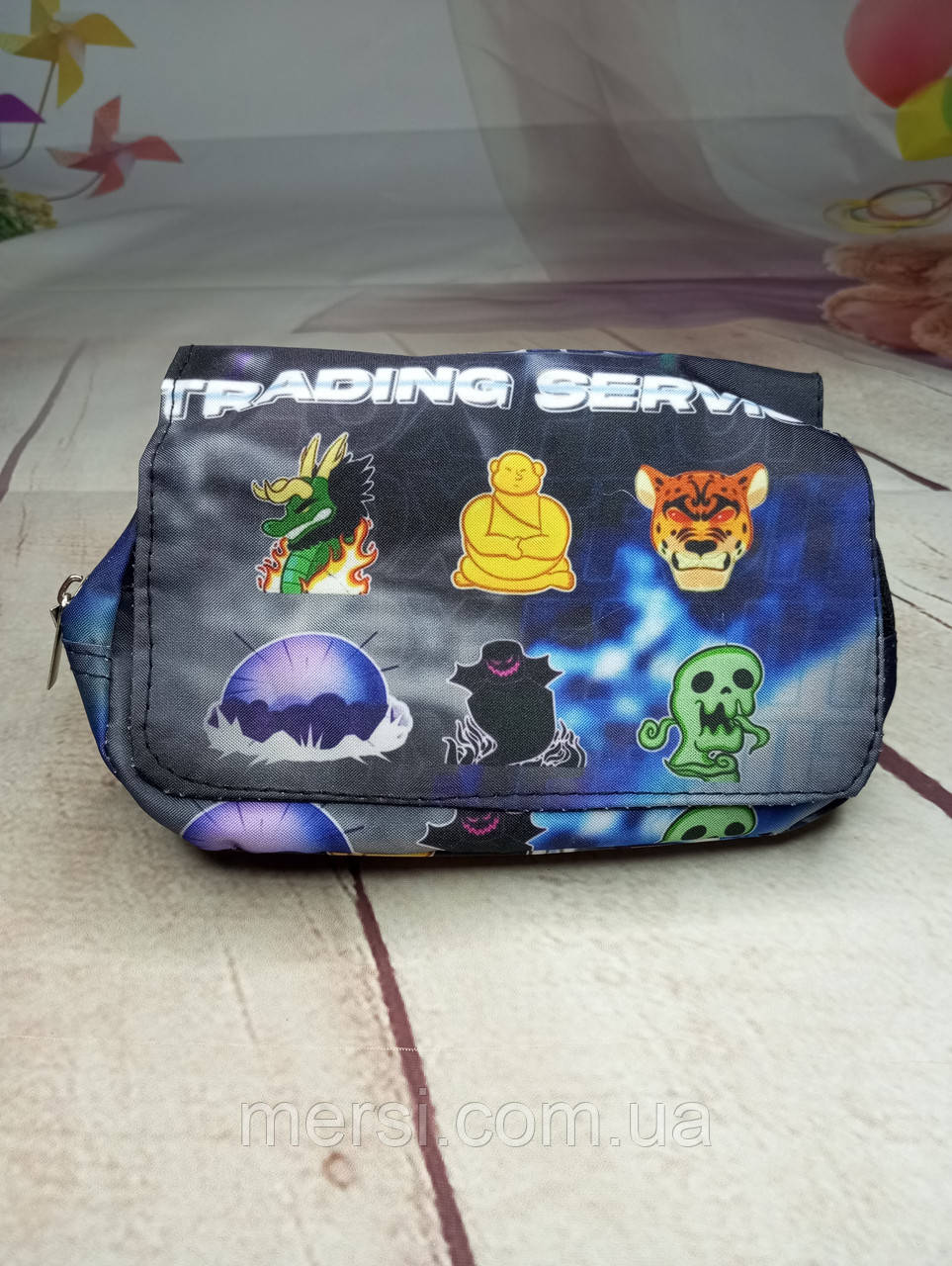 Пенал із клапаном на два відділення, із зображенням персонажів із популярної гри Blox Fruits. Пенал має клапан на липучці та два відділення на блискавці та стане чудовим подарунком та доповненням до вашого мерчу.